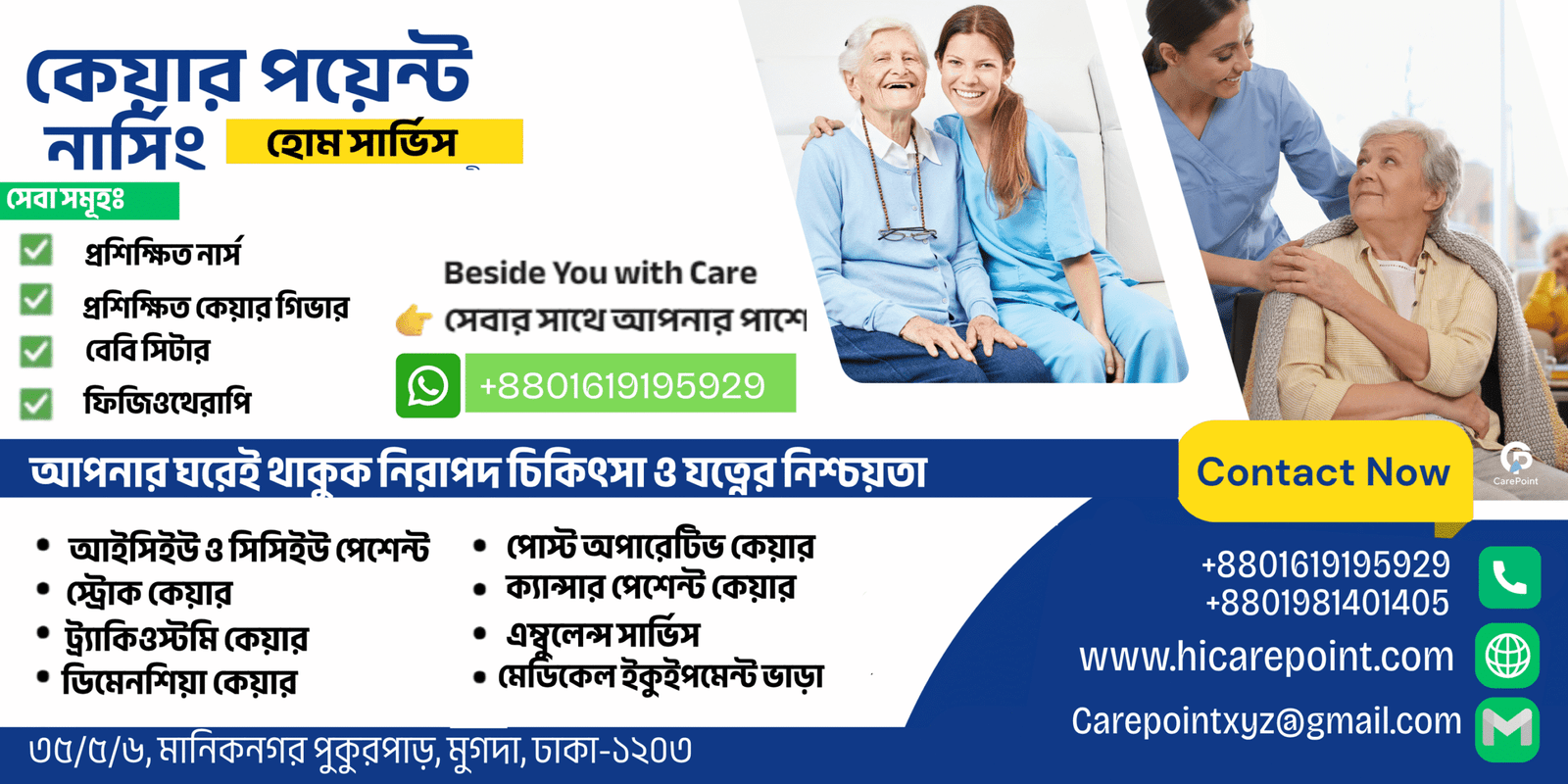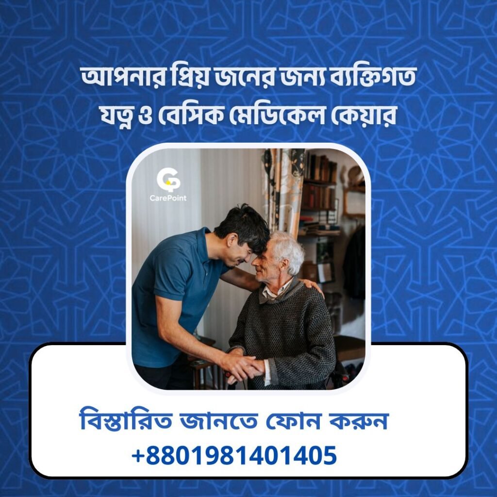 আমরা শুধু চিকিৎসা দিই না, আমরা আপনার প্রিয়জনের মুখে হাসি ফোটানোর চেষ্টা করি। CarePoint-তে প্রতিটি সেবা তৈরি করা হয় রোগীর নির্দিষ্ট প্রয়োজন এবং মানসিক স্বাস্থ্যের কথা মাথায় রেখে।
